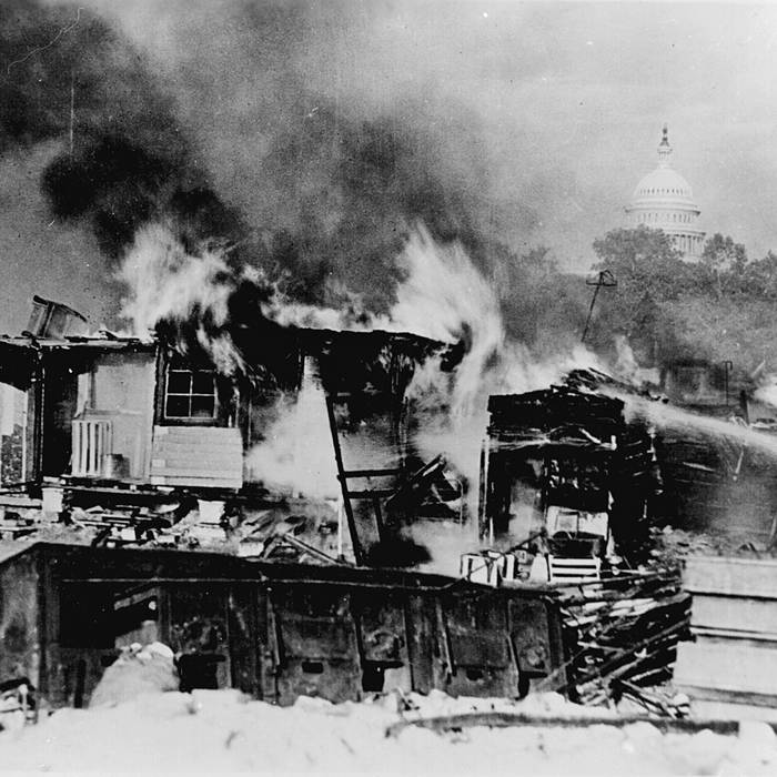 Album artwork is a cropped version of a photograph by 'Signal Corps Photographer' of the 'Fires rage during the Bonus Army March':